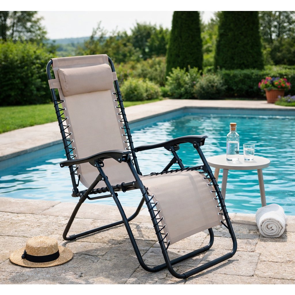 Relaxační křeslo Relax je dokonale přizpůsobené pro pohodové chvíle odpočinku na Vaší terase, zahradě nebo balkonu – lze jej plynule polohovat (s možností aretace páčkou), má ergonomický design a také praktický posuvný podhlavník, který si každý může nastavit dle svých potřeb. Křeslo má stabilní ocelovou konstrukci černé barvy, výplň z pevné a prodyšné rychleschnoucí tkaniny a područky z PVC.