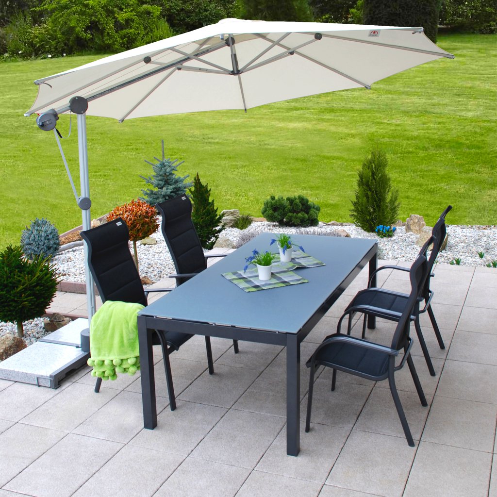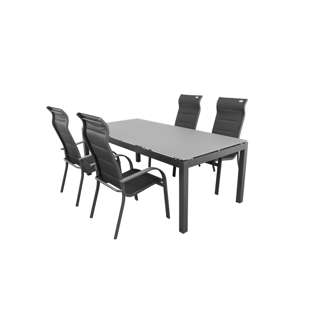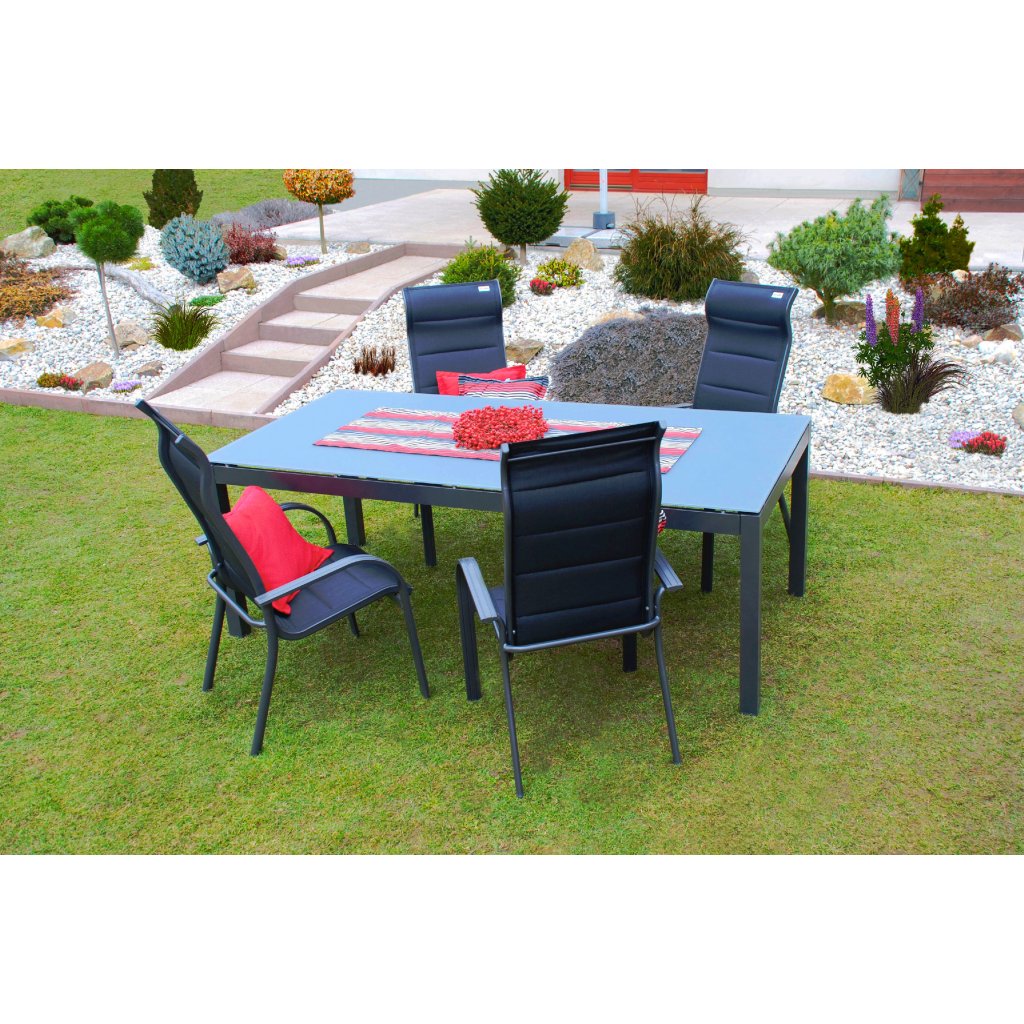 SALERNO je moderní stůl ve velikosti 150 x 90 cm se stabilní hliníkovou konstrukcí, která je ošetřena práškovým nástřikem v antracitové barvě. Díky tomu je kov chráněn proti korozi a povětrnostním vlivům a tím se stává zahradním nábytkem s dlouhou životností.