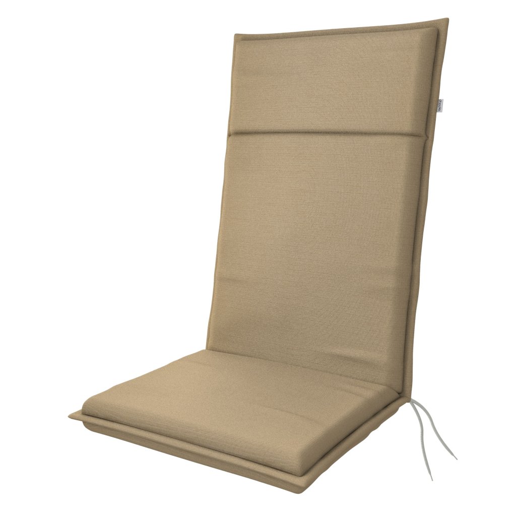 Polstr s vysokou opěrkou na zahradní nábytek řady SIERRA je v provedení s obšitým lemem, prošitý 1x v opěradle. Uchycení je pomocí posuvné spony. Díky sponě si můžete nastavit velikost dle rozměru a druhu židle, spona je pevná a nevytahuje se. Upevnění sedáku je pomocí dvou tkaniček v ohybu polstru. Potah je ošetřený speciální impregnací proti plísni a špíně. Díky této impregnaci zůstávají nečistoty na povrchu impregnace a nedostávají se do jednotlivých vláken potahu a látka se tak snadno čistí pouze navlhčeným hadříkem nebo houbičkou a polstr je odolnější vůči vlhkosti. Pozor, polstr není nepromokavý. Provedení je vhodné i do náročných podmínek kaváren, zahrádek a restaurací. Potah je nesnímatelný.