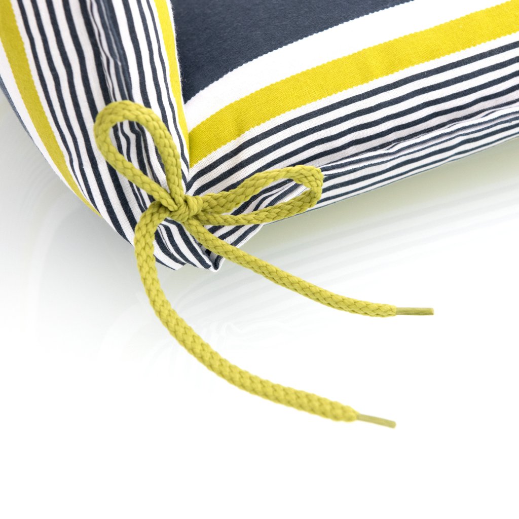 Polstry s vysokou opěrkou na zahradní nábytek řady SPIRIT jsou v provedení s obšitým lemem na okraji ca 1 cm, opěrka polstru je příčně zdobně prošitá, s nastavitelnou posuvnou sponou. Díky sponě si můžete nastavit velikost dle rozměru a druhu židle, spona je pevná a nevytahuje se. Upevnění sedáku k zahradnímu nábytku je pomocí dvou tkaniček v ohybu polstru. Potah je nesnímatelný. Potah je opatřený povrchovou impregnací Fleckschut, která chrání polstr před vsakováním nečistot a prodlužuje jeho životnost.
