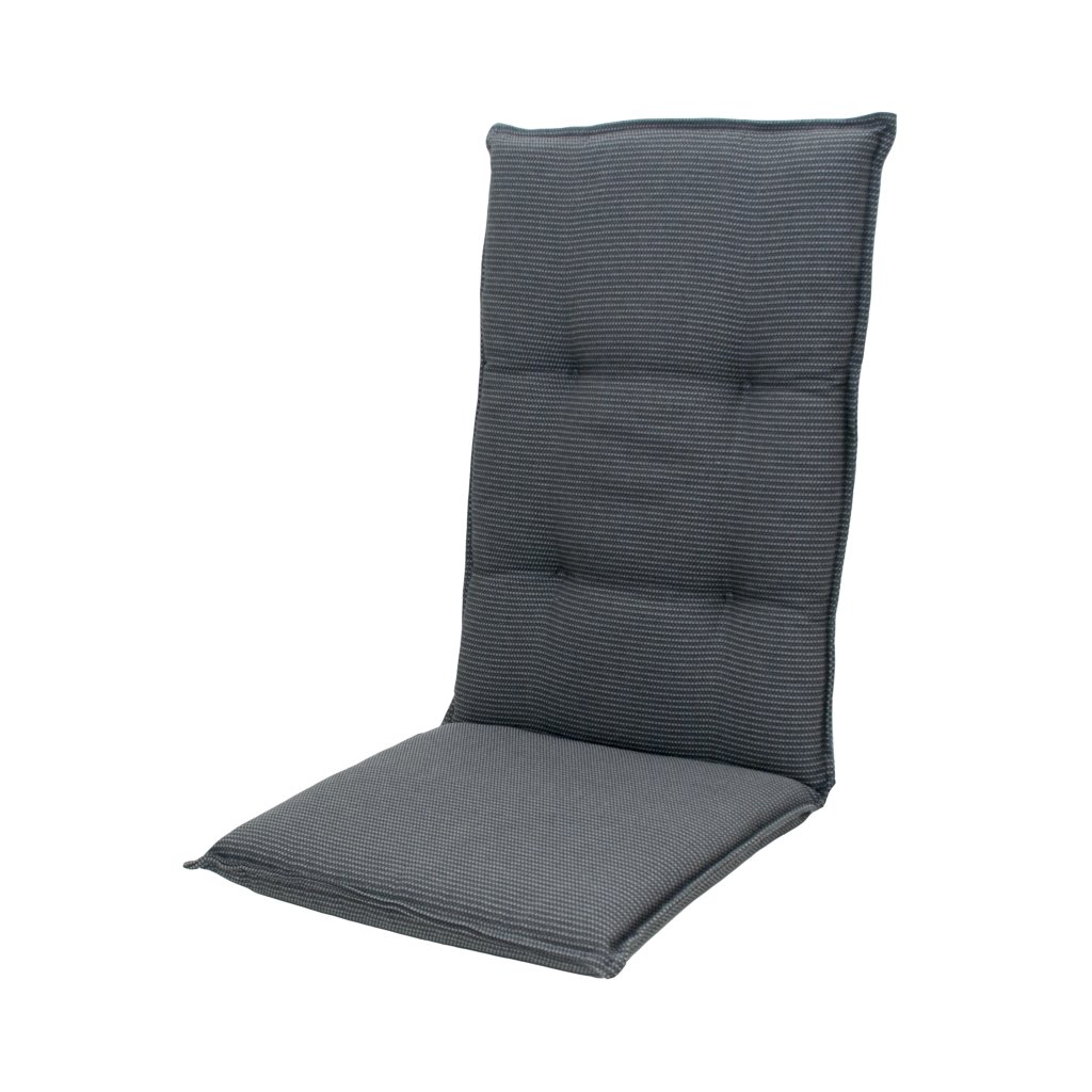 Polstr s vysokou opěrkou na zahradní nábytek řady STAR je v provedení s obšitým lemem, 4x kroužkově prošitý v opěradle. Uchycení je pomocí posuvné spony. Díky sponě si můžete nastavit velikost dle rozměru a druhu židle, spona je pevná a nevytahuje se. Upevnění sedáku je pomocí dvou tkaniček v ohybu polstru. Potah je nesnímatelný.