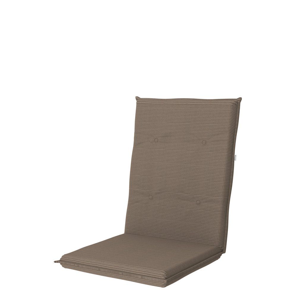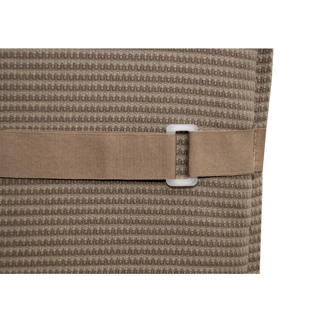 Polstr s nízkou opěrkou na zahradní nábytek řady STAR je v provedení s obšitým lemem, 2x kroužkově prošitý v opěradle. Uchycení je pomocí posuvné spony. Díky sponě si můžete nastavit velikost dle rozměru a druhu židle, spona je pevná a nevytahuje se. Upevnění sedáku je pomocí dvou tkaniček v ohybu polstru. Potah je nesnímatelný.