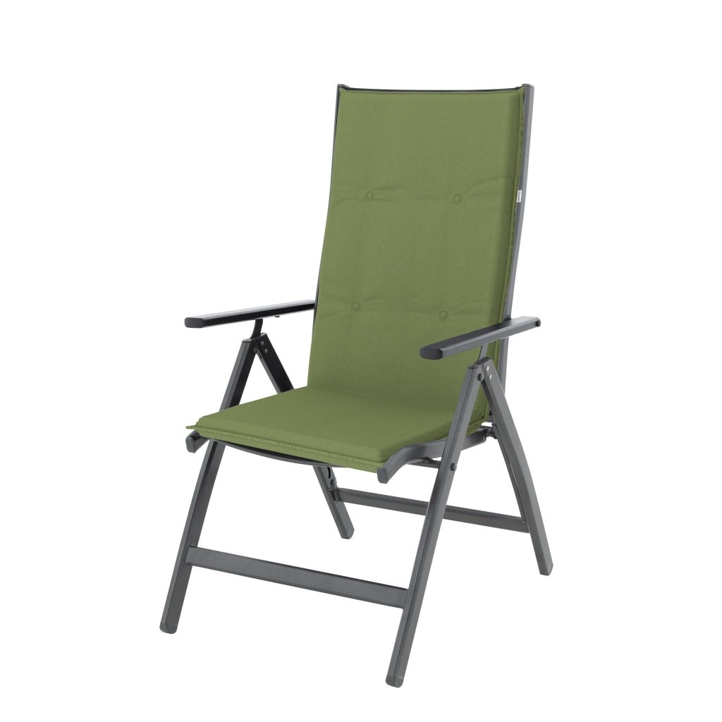 Polstr s vysokou opěrkou na zahradní nábytek řady STAR je v provedení s obšitým lemem, 4x kroužkově prošitý v opěradle. Uchycení je pomocí posuvné spony. Díky sponě si můžete nastavit velikost dle rozměru a druhu židle, spona je pevná a nevytahuje se. Upevnění sedáku je pomocí dvou tkaniček v ohybu polstru. Potah je nesnímatelný.