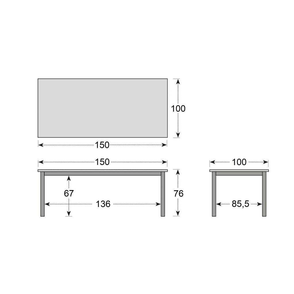 - rozměry: 150 x 100 x 76 cm (šířka x hloubka x výška)