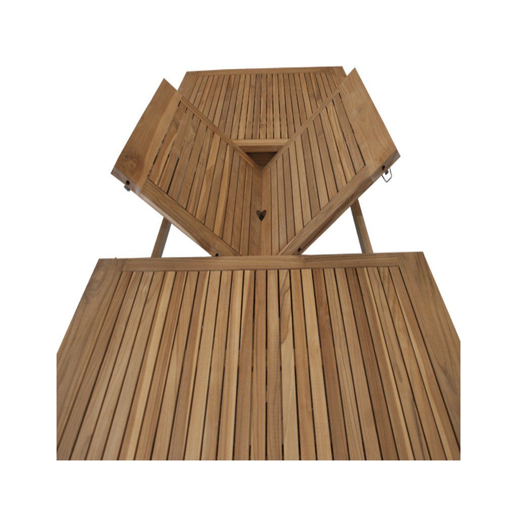 Celodřevěný rozkládací stůl TECTONA má pevnou dřevěnou konstrukci a rozkládací desku z přírodního, kvalitního teakového dřeva. Stůl je možné rozložit díky jednoduchému systému zabudované desky.. To zaručuje nejen vysokou míru funkčnosti, ale i snadnou manipulaci a velmi jednoduchou údržbu. Sklopná konstrukce s rychlouzamykatelným zámkem zajišťuje rychlé a pevné skládání a rozkládání stolu bez omezení jeho stability. Skládací zahradní teakový stůl je všestranný, stylový kus nábytku, který se hodí svou variabilitou k menším rodinným setkáním a zároveň v rozloženém stavu bude nepostradatelným pomocníkem i při větších oslavách.