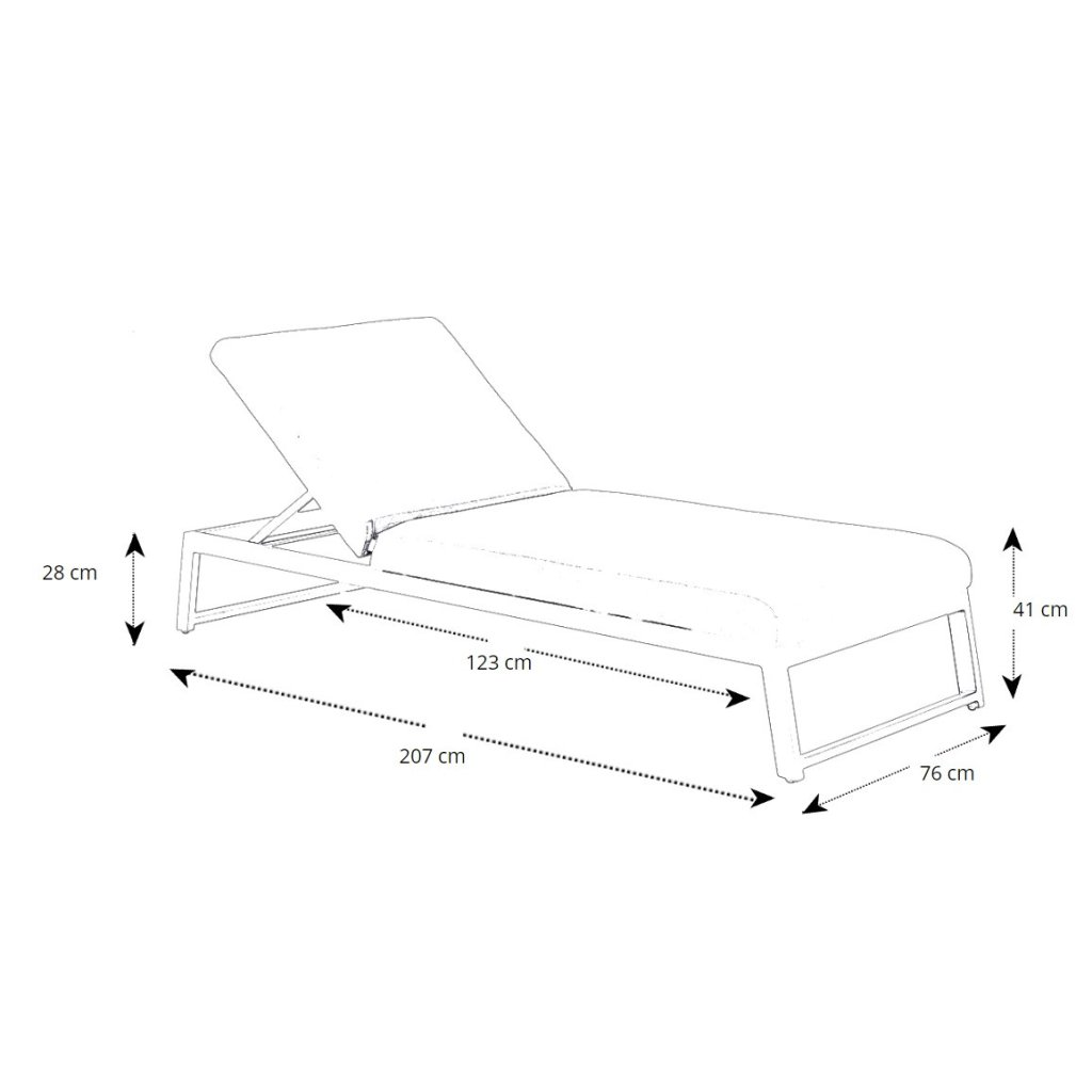 - 1× luxusní lehátko Melia LIKA-TEX®: antracitový hliník, 5 poloh, rozměry: 207 × 76 × 41 cm, max. nosnost: cca 120 kg