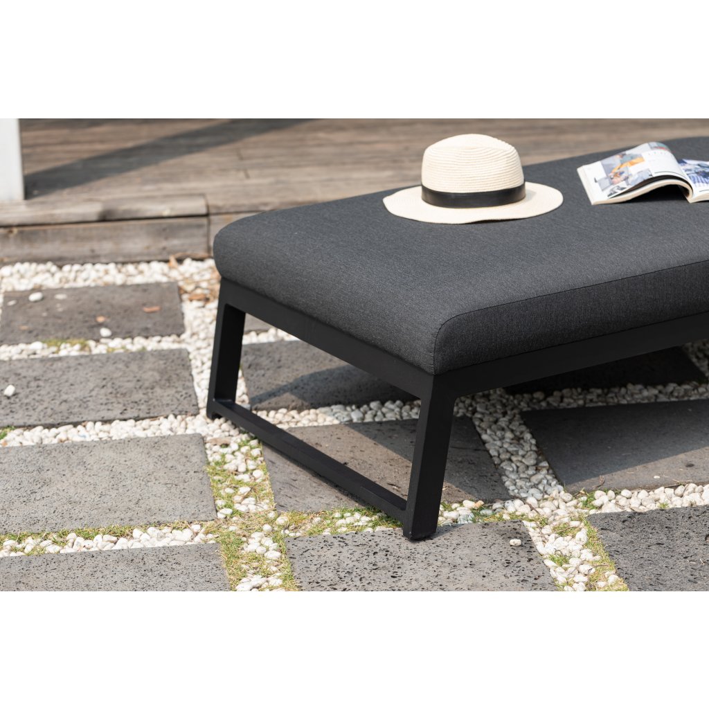 Hlavním prvkem soupravy je ergonomické hliníkové lehátko Melia LIKA-TEX® v elegantní antracitové barvě. Měkké, integrované polstrování z pokročilé textilie LIKA-TEX® zajišťuje vysoké pohodlí při ležení i odolnost vůči UV záření, vlhkosti i plísním. Lehátko je plně polohovatelné – nabízí 5 různých nastavení pro maximální relaxaci. Díky speciální tkanině může zůstat venku celoročně bez nutnosti složité údržby.