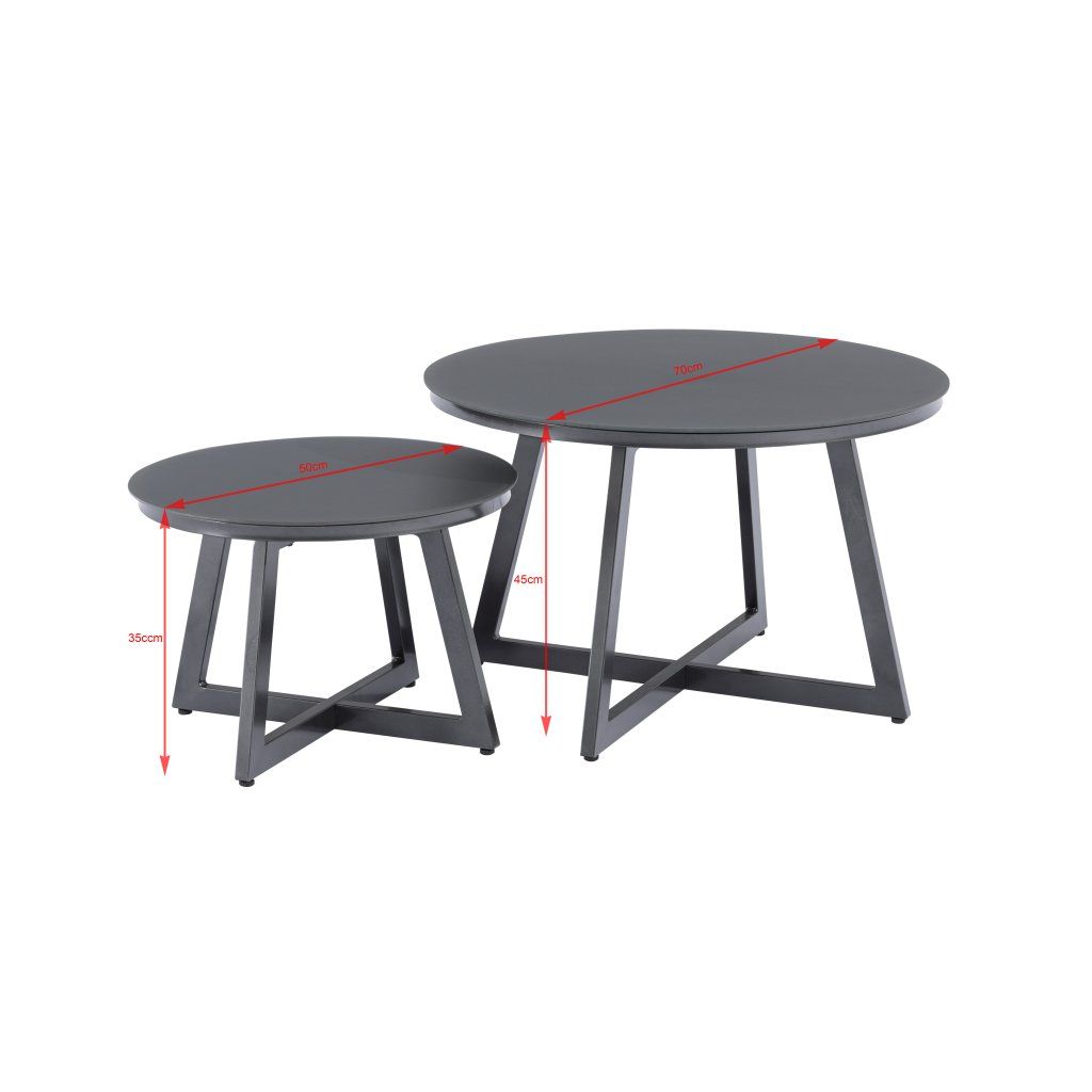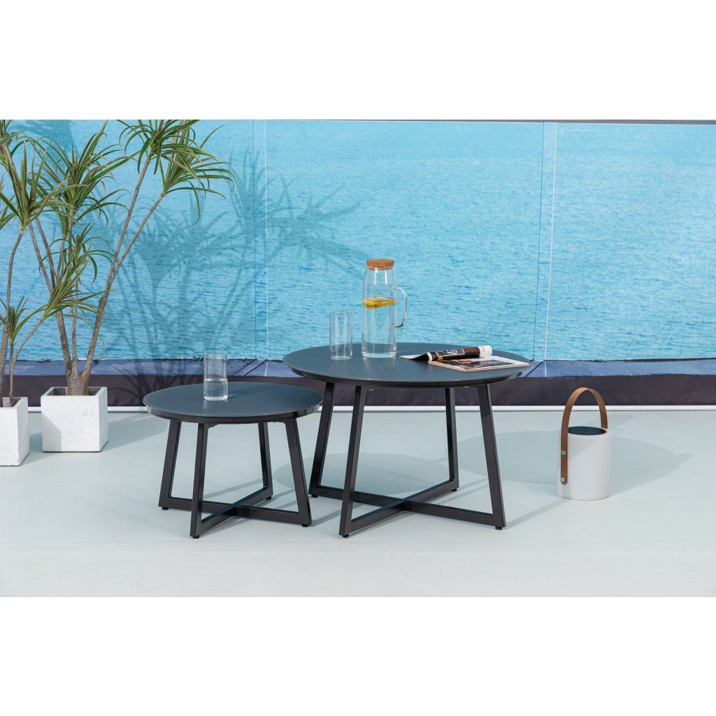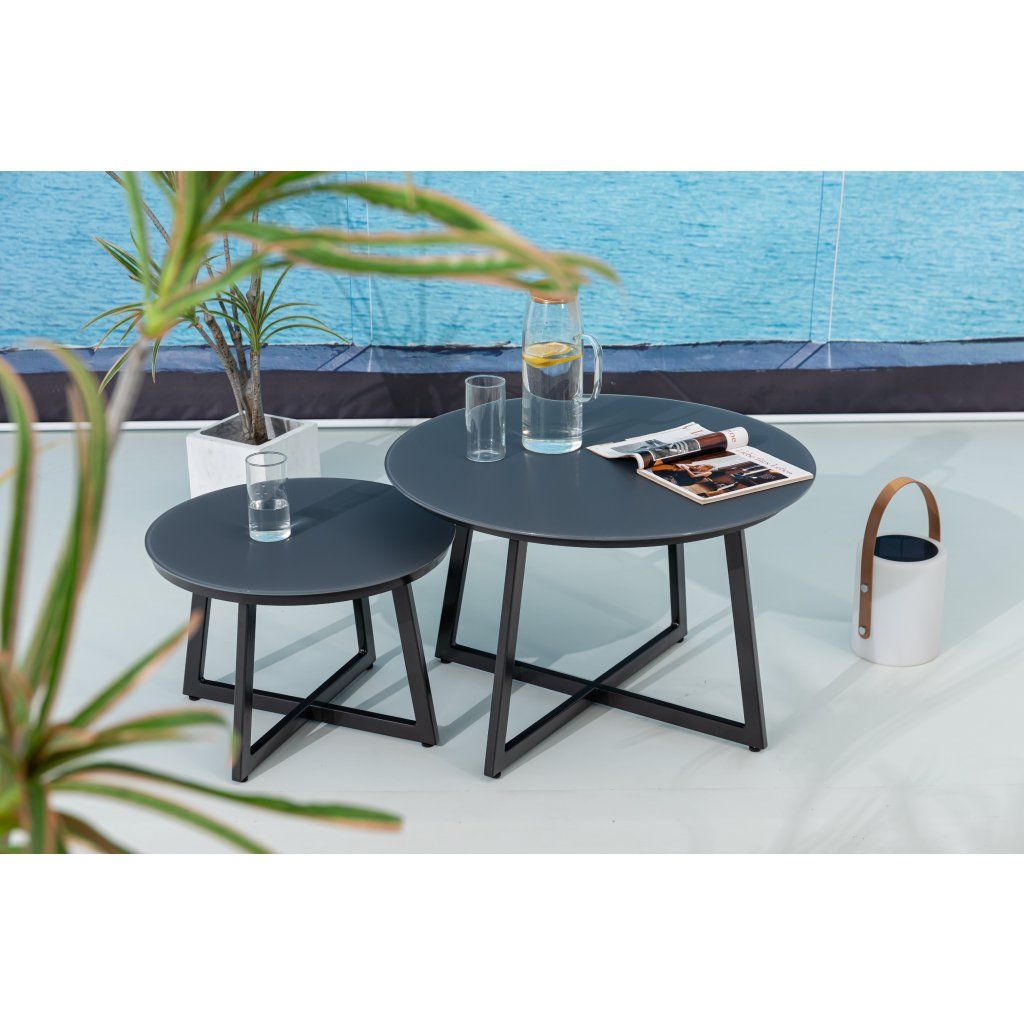 Flexibilní zahradní stolky Tiso jsou vyrobeny z pevného hliníku se strukturovaným sklem v antracitové barvě. Čistá linie a moderní design konferenčních zahradních stolků nabízí velké využití, kdy máte možnost si sestavit celou moderní zahradní soupravu nebo konferenční stolky využít v kombinaci s jiným zahradním nábytkem.