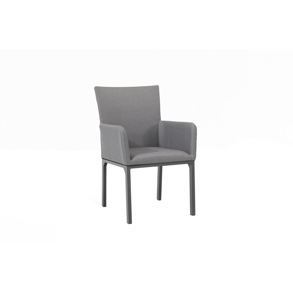Tombolo je designové zahradní křeslo se stabilní hliníkovou konstrukci v antracitové barvě. Moderní polstrované křeslo z látky Olefin v šedé barvě je novinkou letošního roku a rozšiřuje řadu celopolstrovaných jídelních křesel z odolných materiálů. Materiál Olefin je syntetická tkanina s vynikajícími vlastnostmi pro venkovní použití, vhodná i do zátěžových provozů. Vlastnosti: odolnost vůči otěru, odolnost v tahu, vysoká světlostálost, příjemná na omak, odolná vůči skvrnám, odpuzuje nečistoty a je rychleschnoucí. Výplň křesla je rychleschnoucí pěna. Konstrukce je velmi lehká přesto bytelná a pevná.