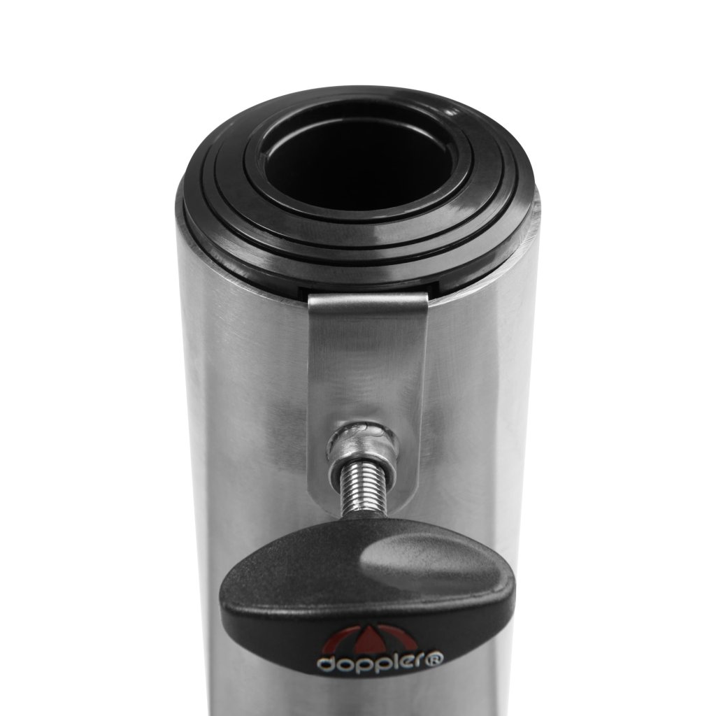 Důvod 2. jakosti: Sokl nemá díru na zajišťovací kolík (z trubky byl kolík odříznut). Mírně poničený obal. Plně funkční. Tento stojan ze světle šedé leštěné žuly je vybavený 2 koly a rozšiřitelnou trolejovou rukojetí pro snadnější přesouvání. Slunečník se kotví do trubky z nerezové oceli a zajišťuje pomocí dvou pojistných šroubů. Trubka má několik redukčních kroužků, které umožňují použití průměrů tyče slunečníku 32–60 mm. Díky hmotnosti 70 kg je zajištěna bezpečná stabilita i středně velkých středových slunečníků až do průměru střechy 350 cm.