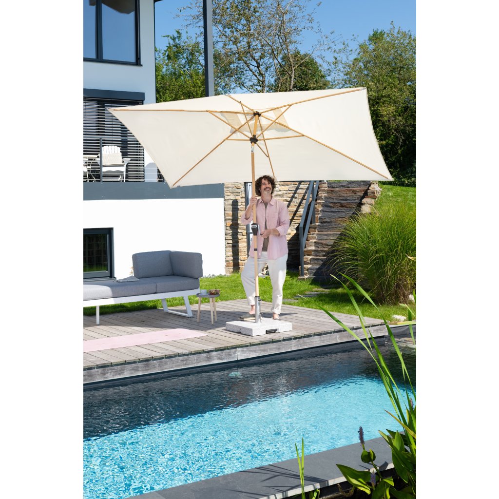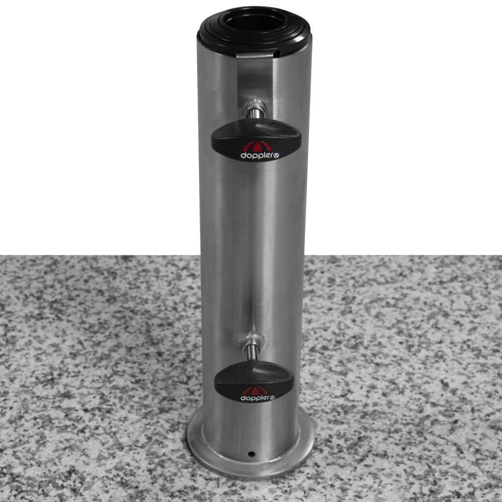 Tento stojan ze světle šedé leštěné žuly je vybavený 2 koly a rozšiřitelnou trolejovou rukojetí pro snadnější přesouvání. Slunečník se kotví do trubky z nerezové oceli a zajišťuje pomocí dvou pojistných šroubů. Trubka má několik redukčních kroužků, které umožňují použití průměrů tyče slunečníku 32–60 mm. Díky hmotnosti 70 kg je zajištěna bezpečná stabilita i středně velkých středových slunečníků až do průměru střechy 350 cm.