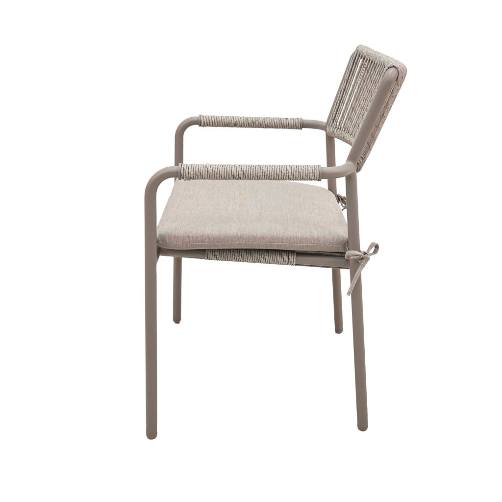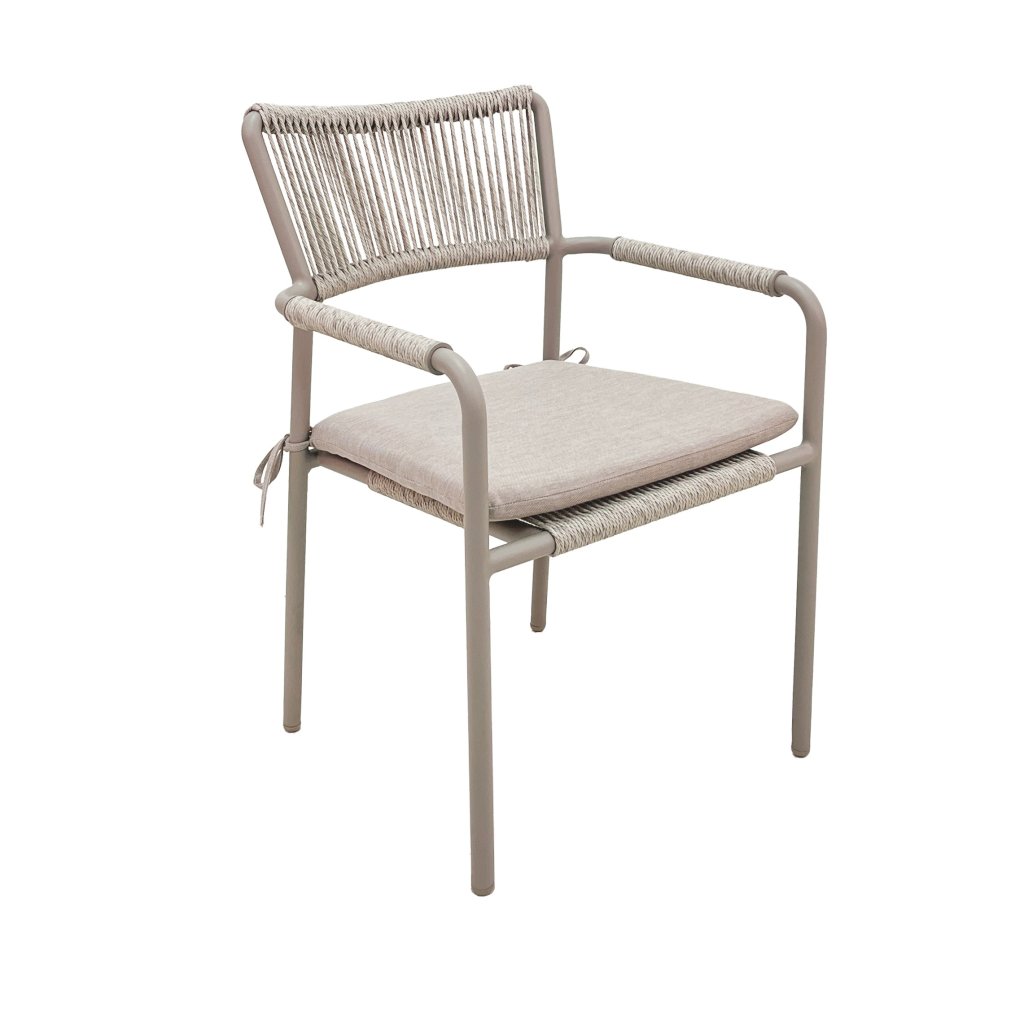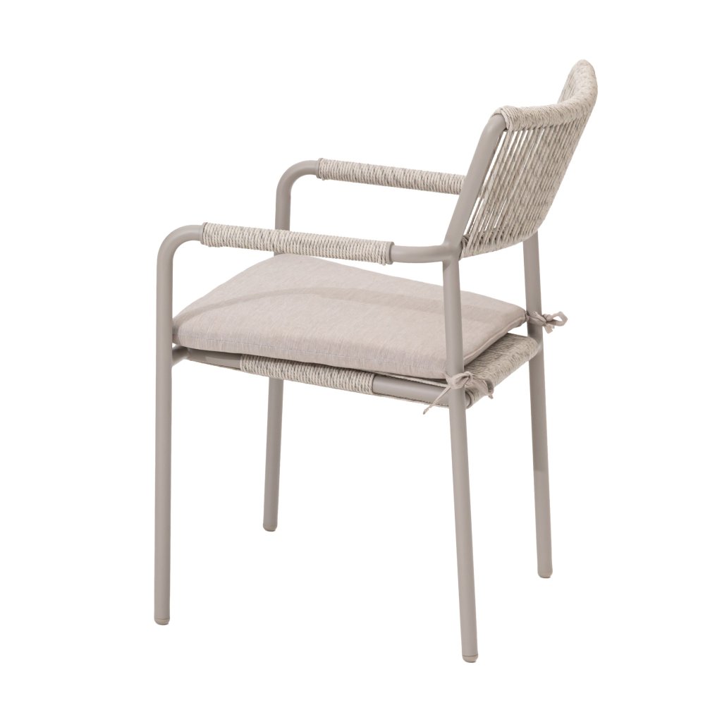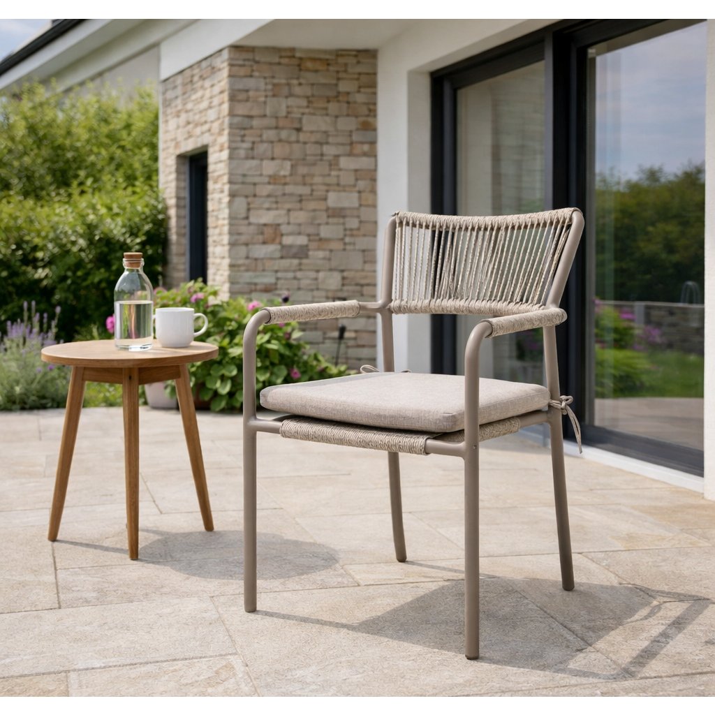 Praktická stohovací křesla Velia s provazovým výpletem sedáku a opěrky, spolu s opletenými područkami, umožňují snadné uskladnění, když je zrovna nepotřebujete. Svou jednoduchou a čistou linií jsou nenáročné na manipulaci. Díky použitým materiálům jsou zcela bezúdržbové a odolné povětrnostním vlivům.