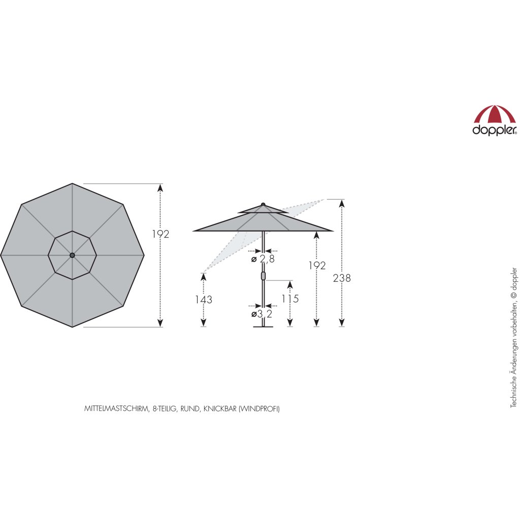 | Typ slunečníku: | Se středovou tyčí |
