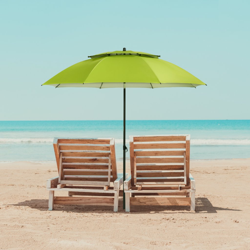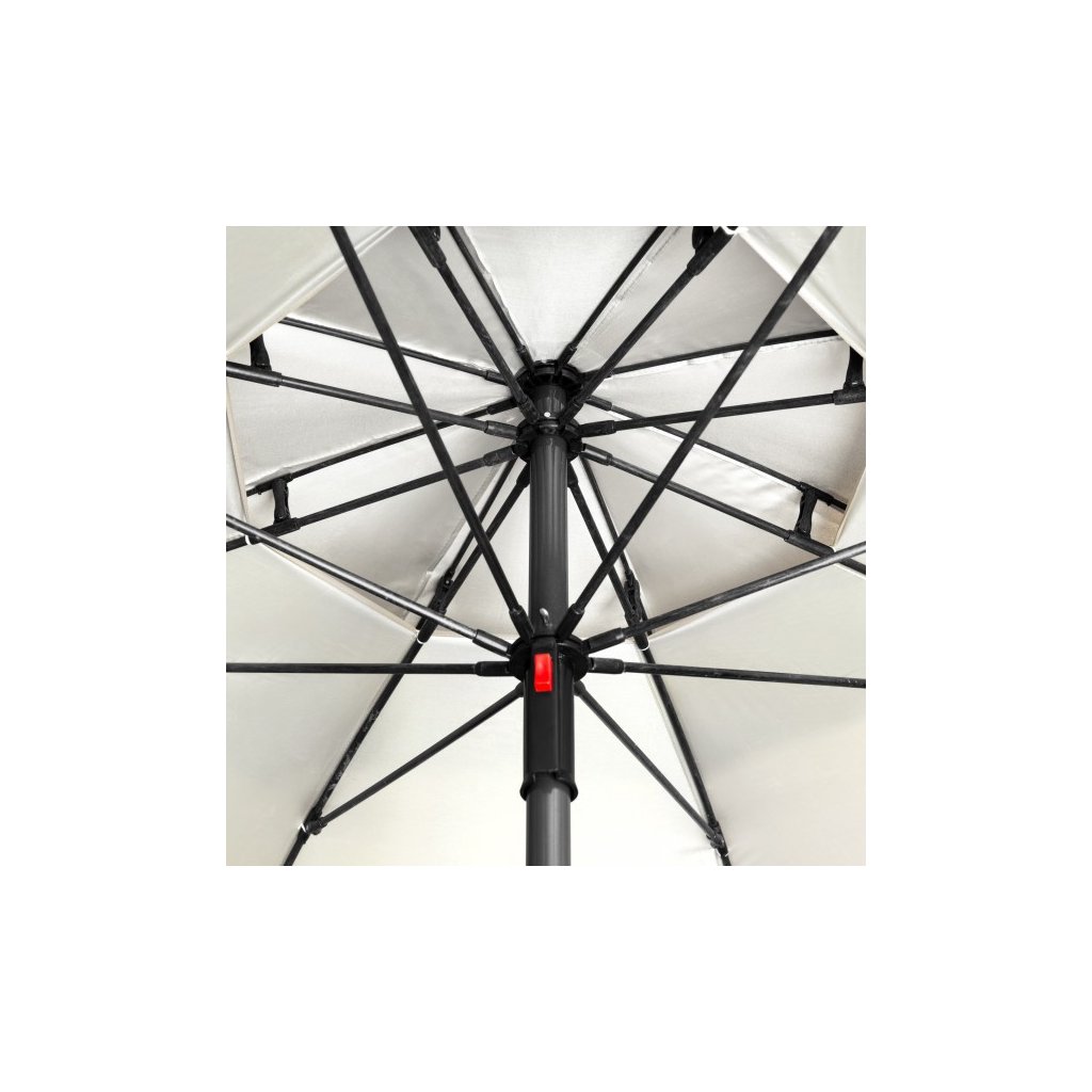 Tento robustní plážový slunečník je ideálním společníkem na pláž, k rybníku nebo bazénu. Rám slunečníku je vyroben z oceli ošetřen práškovou barvou a je výškově nastavitelný. Vzduchový ventil, sklolaminátové výztuhy a praktická přenosná taška dokonale dotváří tento výrobek. Potah je vyroben z polyesterové tkaniny odolné povětrnostním vlivům s dobrou UV ochranou 50+.
