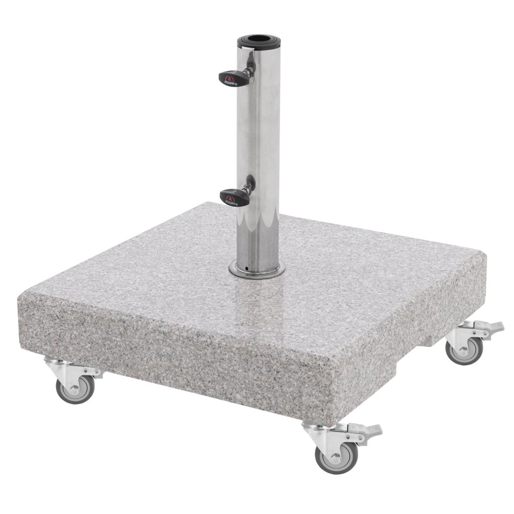 Tento stojan je je možné využít téměř všude, ať už se jedná o balkon, zahradu nebo terasu. Díky své hmotnosti je podstavec vhodný pro slunečníky o průměru až 200 cm. Slunečník je optimálně upevněn v držáku z nerezové oceli pomocí dvou upevňovacích šroubů. Základna je vyrobena z leštěné žuly. Stojan je také vybaven praktickým zapuštěným úchytem. To umožňuje snadné zvedání a nastavení stojanu.