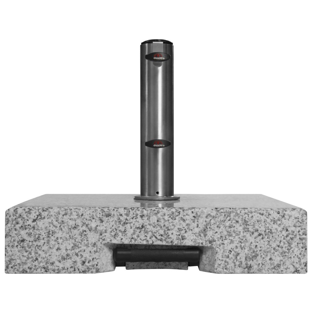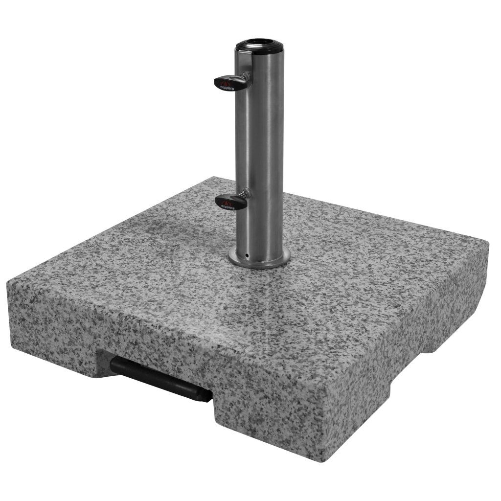Vyrobený ze světle šedé žuly s 2 koly a rozšiřitelnou trolejovou rukojetí pro snadnou přepravu. Nerezová tyč má několik redukčních kroužků, které umožňují použití slunečníků s průměrem tyče 32–60 mm. Slunečník se kotví do tyče (trubka z nerezové oceli) pomocí dvou pojistných šroubů. Díky své hmotnosti 50 kg je zajištěna bezpečná stabilita i středně velkých středových slunečníků až do průměru 350 cm.